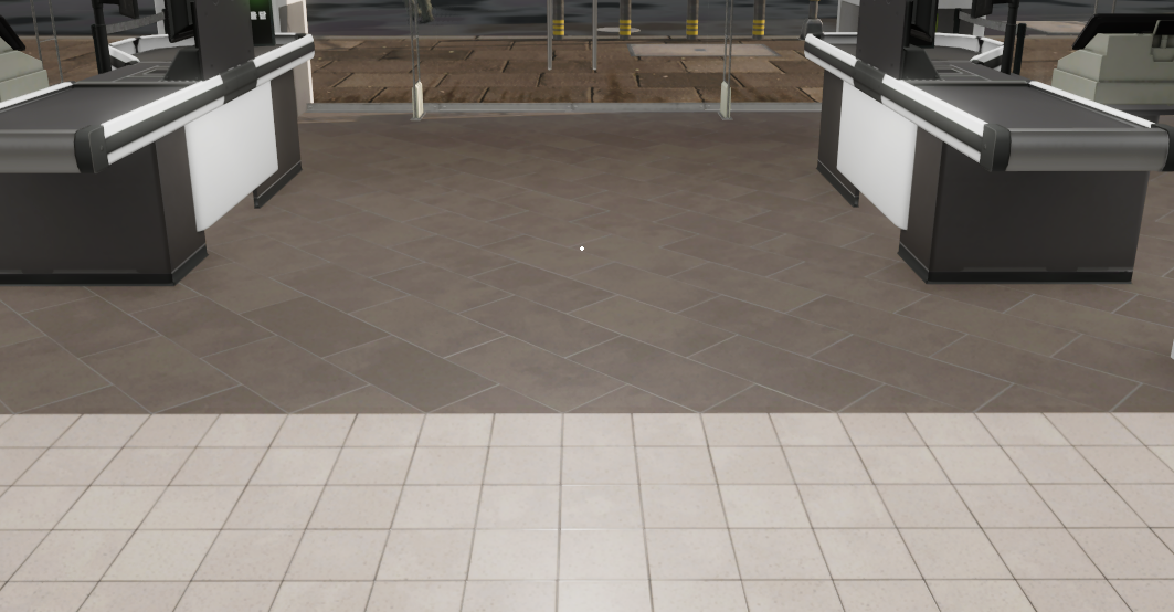 플레이 하면서 가장 아쉬웠던 점은 역시 이 바닥재인데, 확장 공사를 하게 되면 매대가 있는 쪽의 바닥은 전부 이렇게 생겼다. 같이 하던 친구와 우스갯소리로 공중 화장실 바닥같다는 말을 하곤 했다. 슈퍼마켓 시뮬레이터의 정갈한 바닥재를 생각하면 매장 꾸미기를 좋아하는 유저층의 입장에서는 굉장한 마이너스 요소. 이 부분은 추후 업데이트를 기대해봐야 할 것 같다.